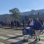 A las 10.30h se ha reunido un numeroso grupo de socios en la puerta de Carrefour de Espartales cargados con bolsas de ayuda o han entrado a comprarlos.