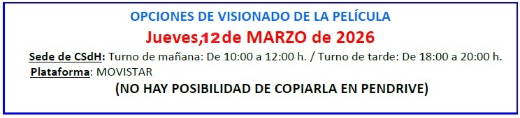 Para inscribiros, podéis hacerlo desde hoy y hasta completar el aforo (30 socias/os por sesión) en el botón de REGISTRO siguiente o en el formulario enviado por Whatsapp o con un mensaje en el grupo de WhatsApp indicando, como siempre: Taller de Cine, nombre y apellidos, y si os apuntáis al turno de la mañana o de la tarde